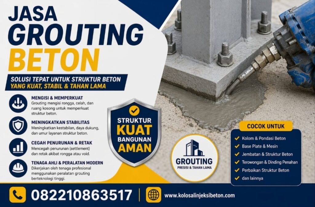 Kami Cv. Cahaya Cipta Mandiri akan menyampaikan informasi harga jasa Grouting beton di Pulau Jawa ,wilayah Jabodetabek, Banten, Jawa barat, Jawa Tengah dan sekitarnya.