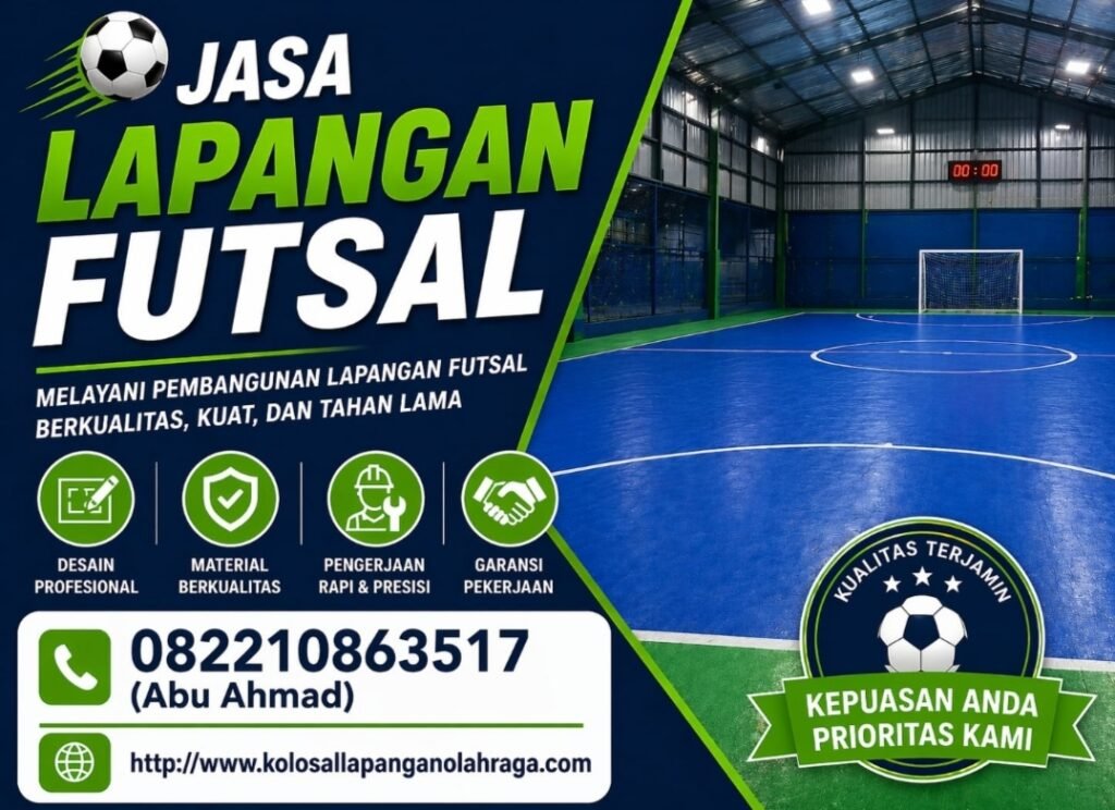 Jasa Pembuatan Lapangan Futsal – Kami adalah Spesialis penyedia Jasa Pembuatan Lapangan Futsal untuk perorangan maupun perusahaan yang hendak membuka usaha lapangan futsal, Kami bekerja sama dengan ahli tukang lapangan futsal guna menjaga kualitas setiap pekerjaan kami.